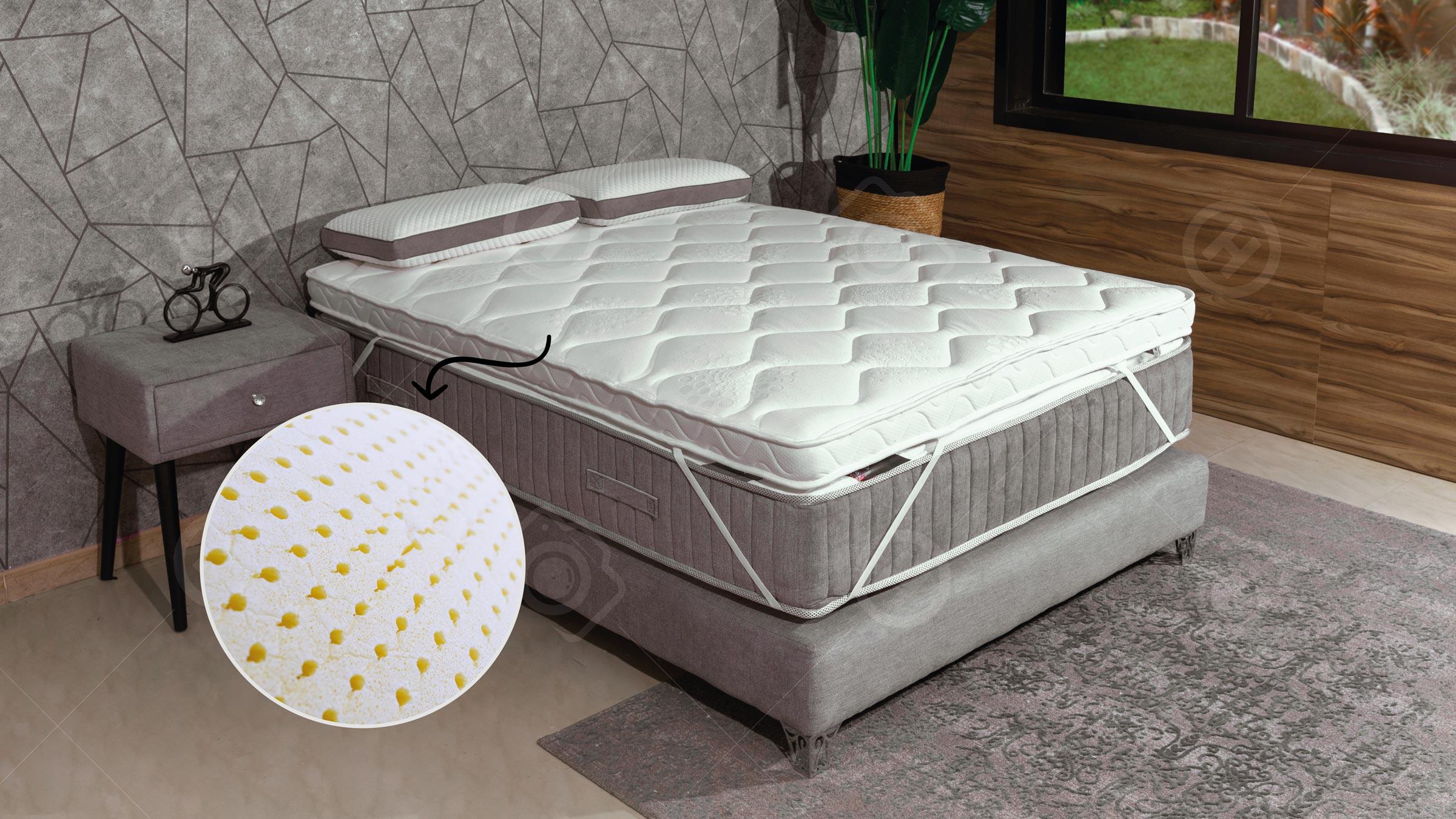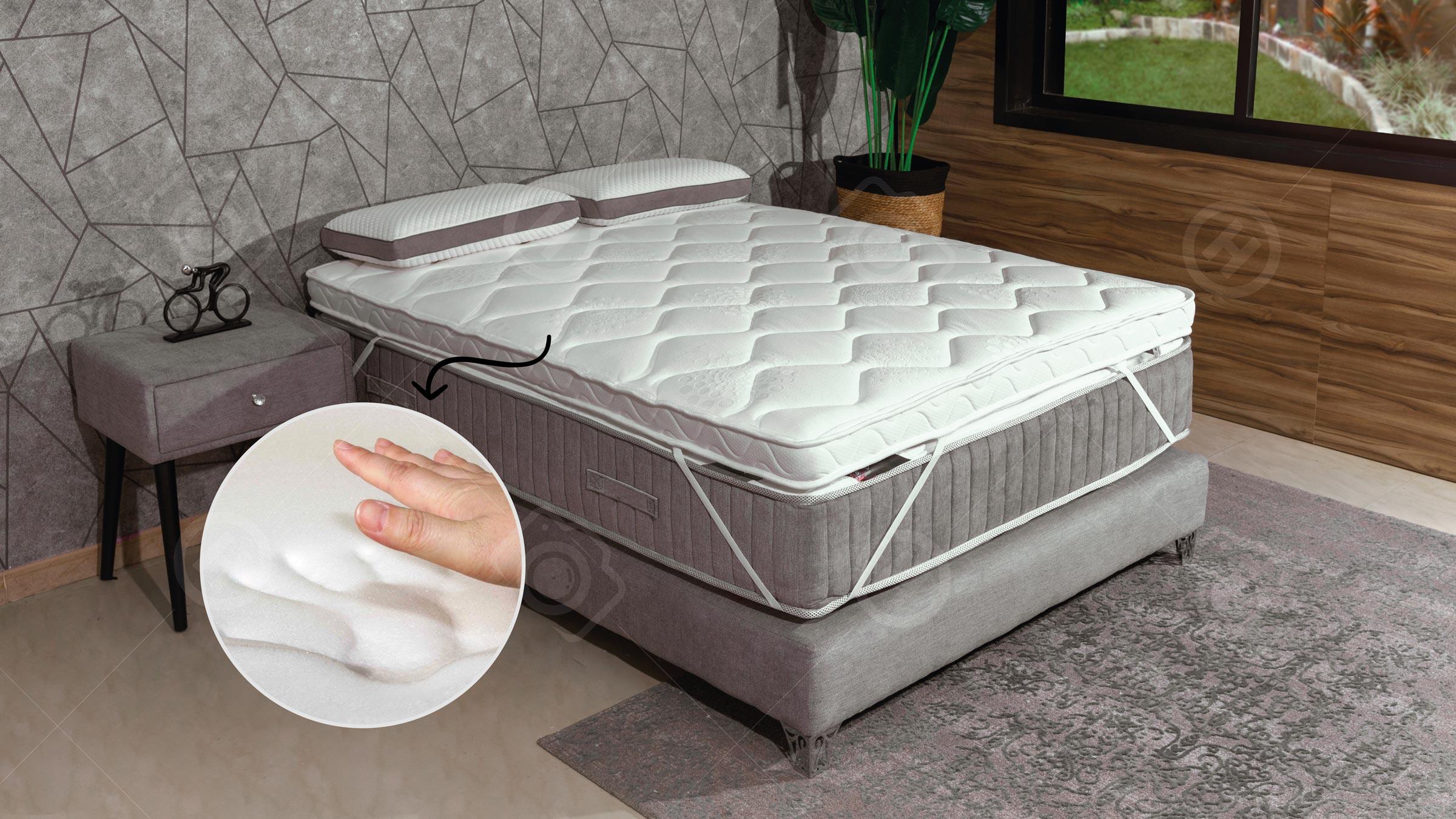 The core of this topper with a height of 9cm is made of Viscoelastic foam OR Natural Latex foam OR Segol- high-density foam, this topper gives the body extra comfort, support, distributes the body's weight over the maximum area and relieves it, which has a positive effect on the body's blood circulation, relieving back pain and improving sleep quality. This topper provides a wonderful sleeping environment with high quality quilted knitted fabric, with four durable elastic straps in the corners. It can used in two sides.